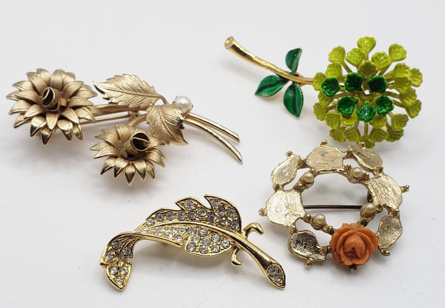 4 FLORALS BROOCH LOT