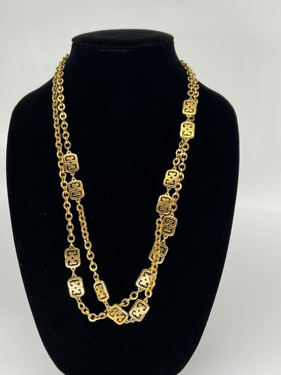 LONG GOLD TONE LINK NECKLACE