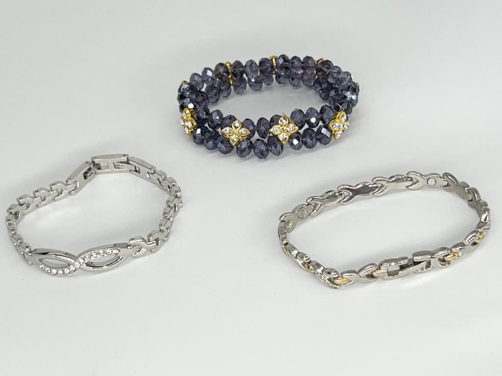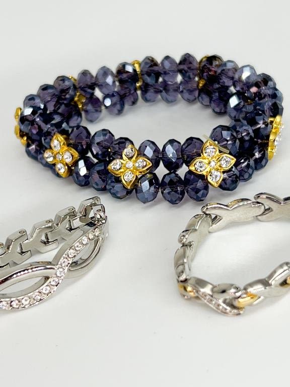 RHINESTONE, TWO TONE BRACELET TRIO ! LOOK !