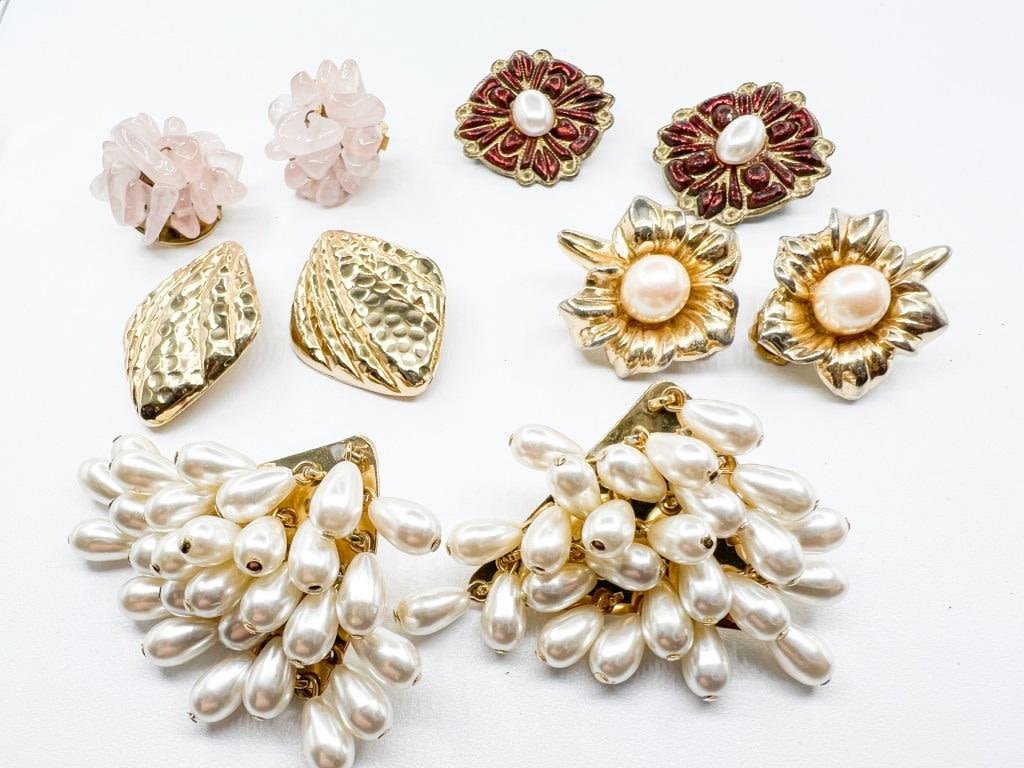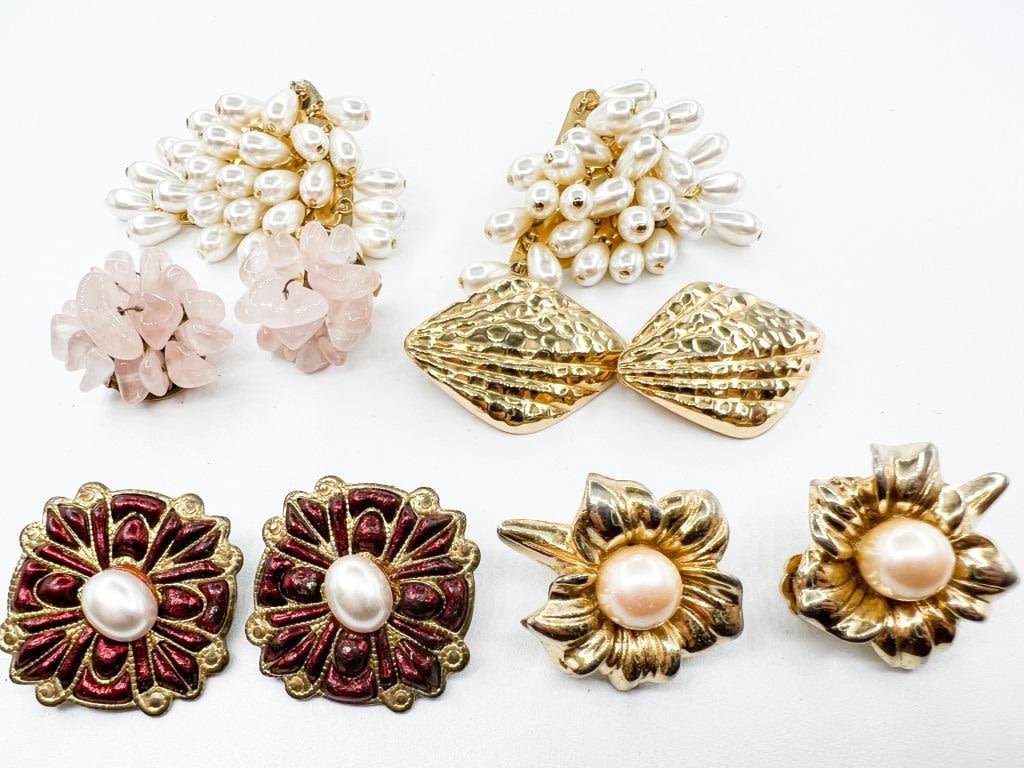 VINTAGE EARRING COLLECTION FAUX PEARL BUNCH, PINK STONE, MORE