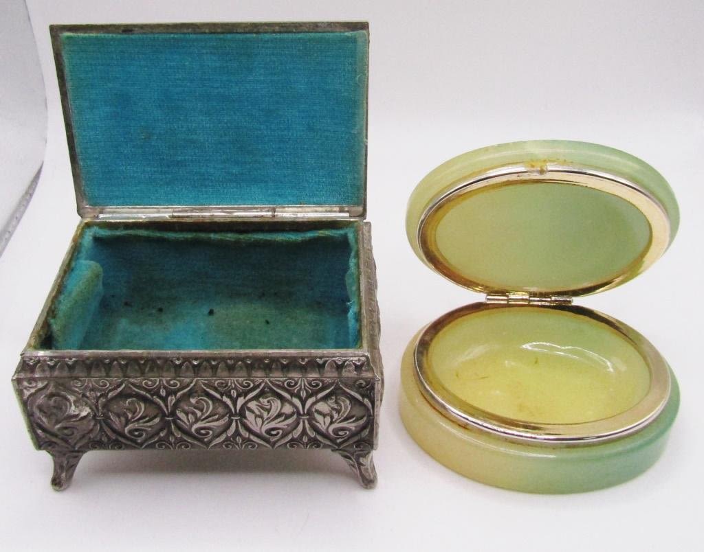 ONE CAMEO STYLE WITH BLUEISH FELT INSIDE! ONE Green Alabaster Hand Carved !