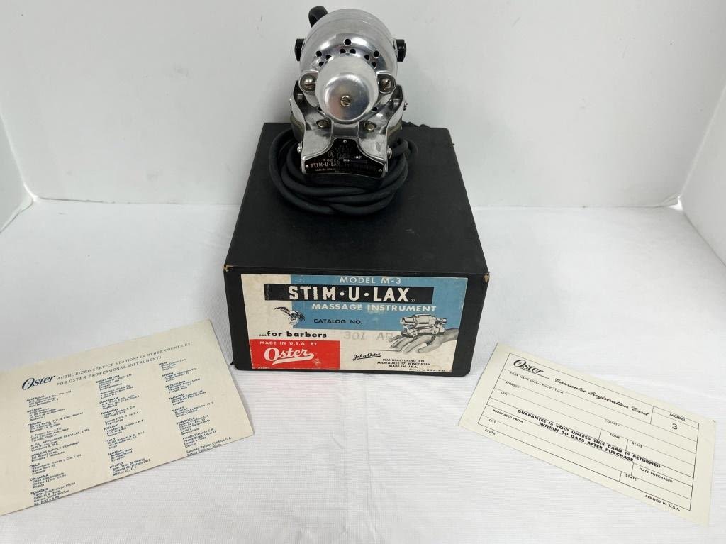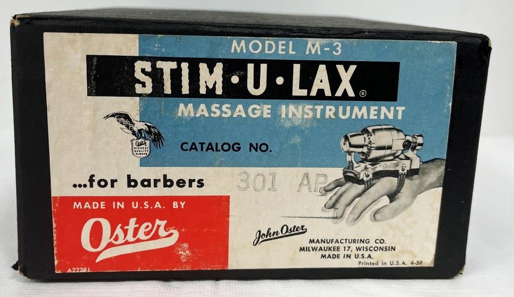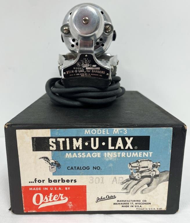 Model M-3 Hand Massager for barbers, Oster Brand ‘Stim-U-Lax’, used with box