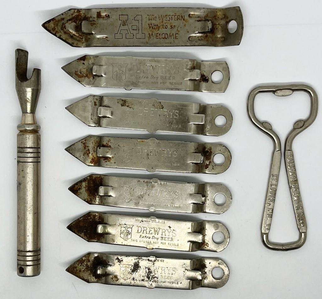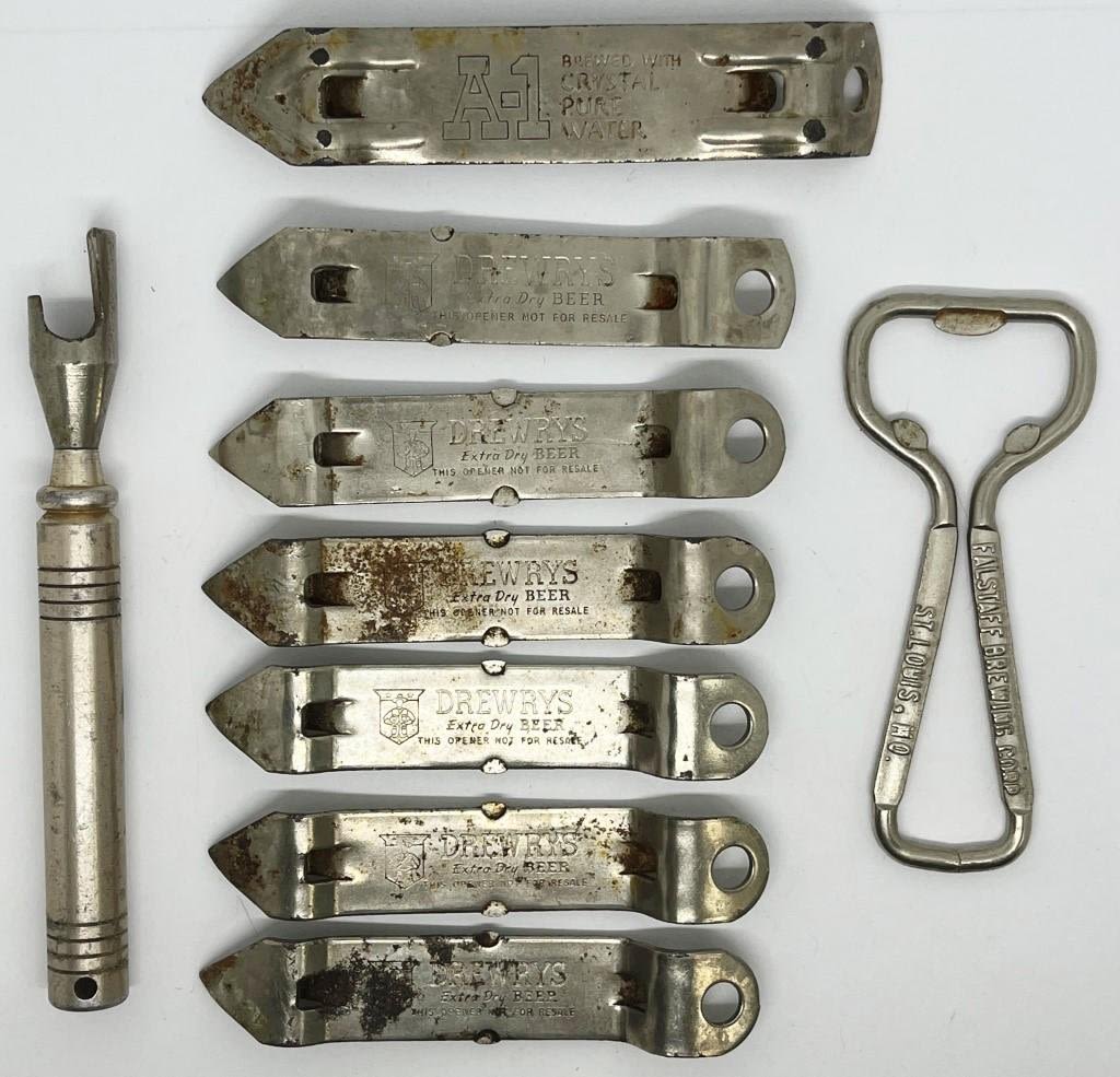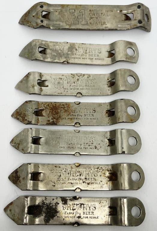Vintage Bottle/ Can Openers – Brands include 6 Drewrys, A-1, Falstaff Brewing and random