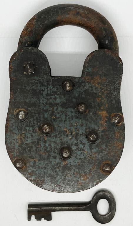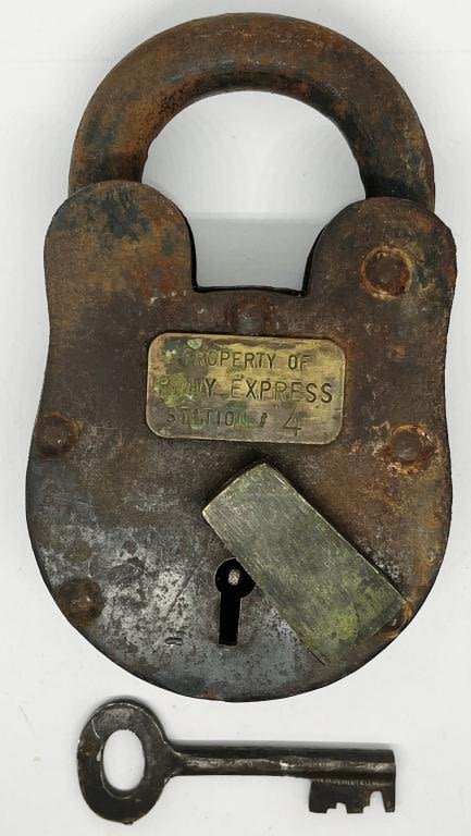 Vintage Pad Lock and Key ‘propert of pony express station #4’ cast iron