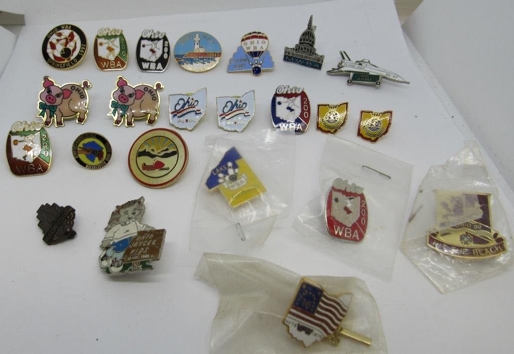 (4) POSTAGE GAURANTEED DISABLED OHIO VETERAN, VARIOUS OHIO PINS