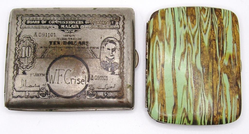 ONE WITH A GREEN AND BROWN PATTERN , ONE WITH "TEN DOLLARS, BOARD OF COMMISONERS OF CURRENCY MALAYA."