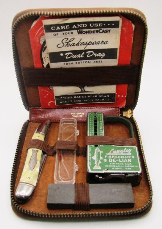 INCLUDES LANGLEY FISHERMANS DE-LIAR, IMPERIAL MARKED 2 BLADE FISHING KNIFE, & MORE.