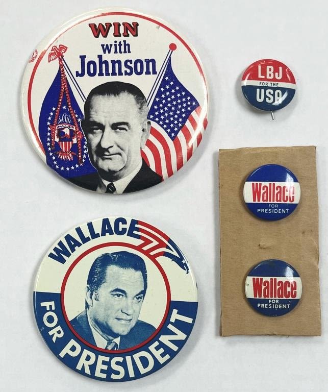 Lyndon Johnson and George Wallace Political Pins. Lot of 5