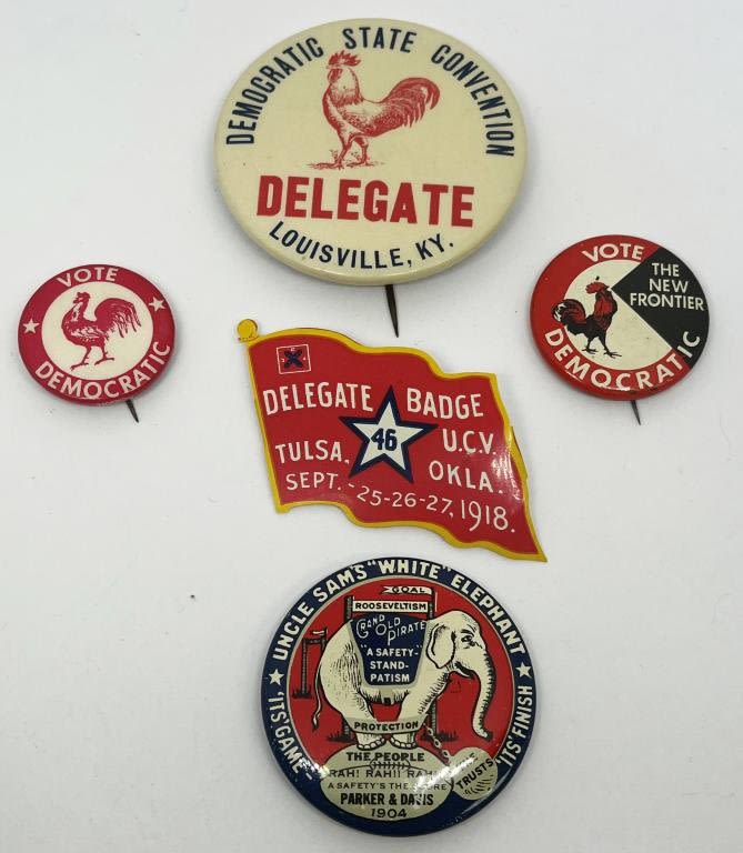 Lot of 5 Political pins. Vot Democratic