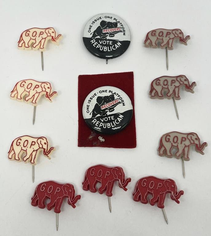 Republican Elephant Pins. Lot of 11 pins