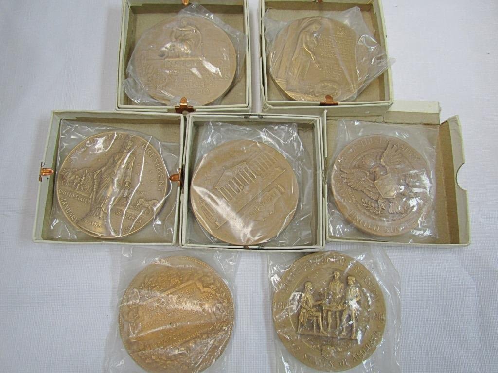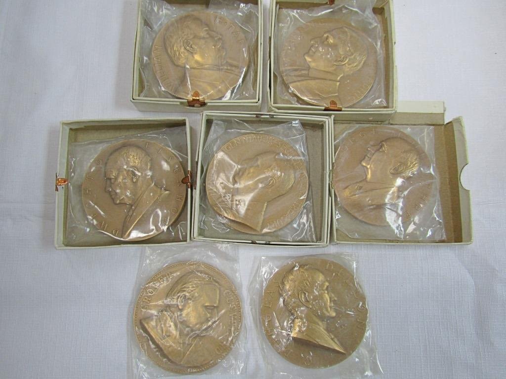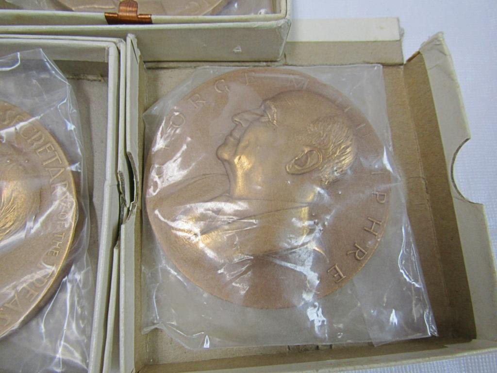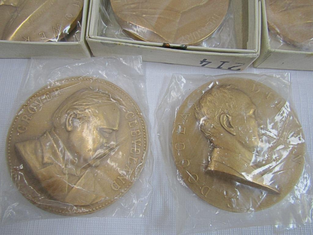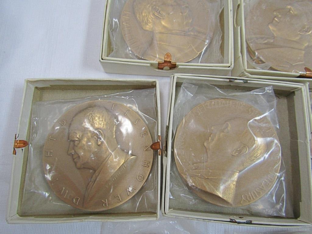 3" DIAMETER BRASS / BRONZE MEDALLIONS – WARREN C HARDING, GRAOVER CLEVELAND, WILLIAM H TAFT, DWIGHT EISENHOWER, (3) SECRETARY of TREASURER HUMPHREY, MORGENTHAU JR, DILLON