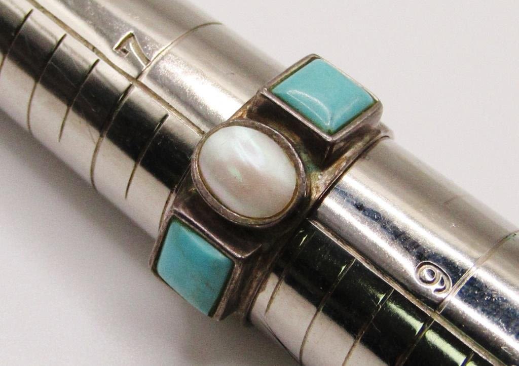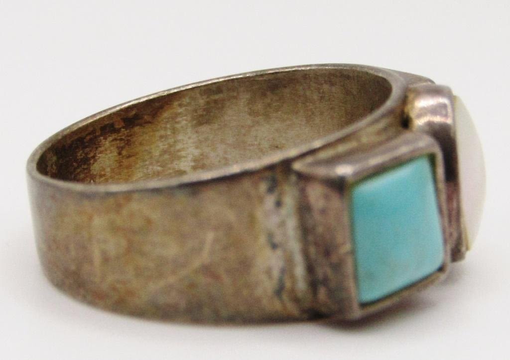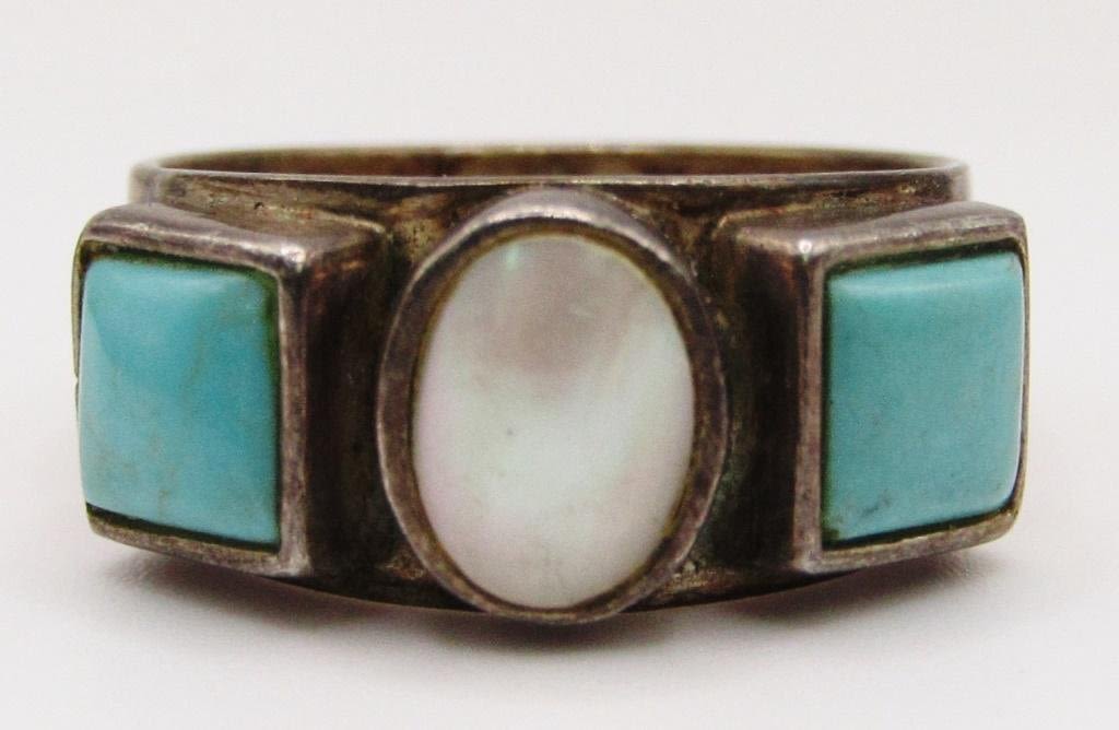SLEEPING BEAUTY AND MOTHER OF PEARL STONES-RING SIZE 8-TOTAL 3.7 DWT