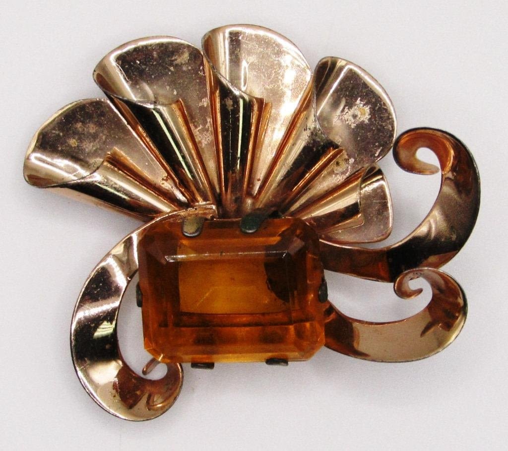LARGE BURNT ORANGE RETANGLE CENTER STONE-TOTAL 9.5 DWT