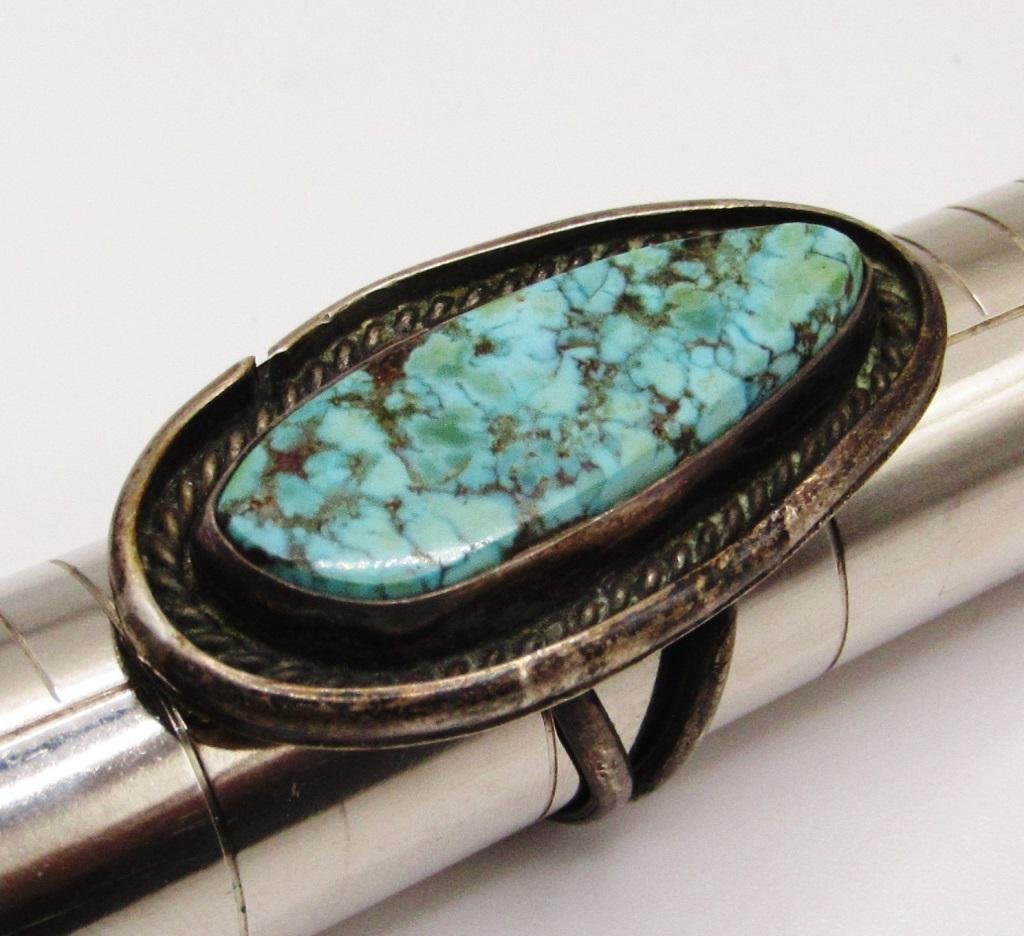 LARGE TURQUOISE CENTER STONE-RING SIZE 9-TOTAL 7.5 DWT