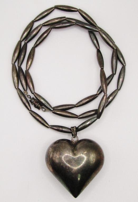 VINTAGE HOLLOW STERLING HEART PENDANT WITH