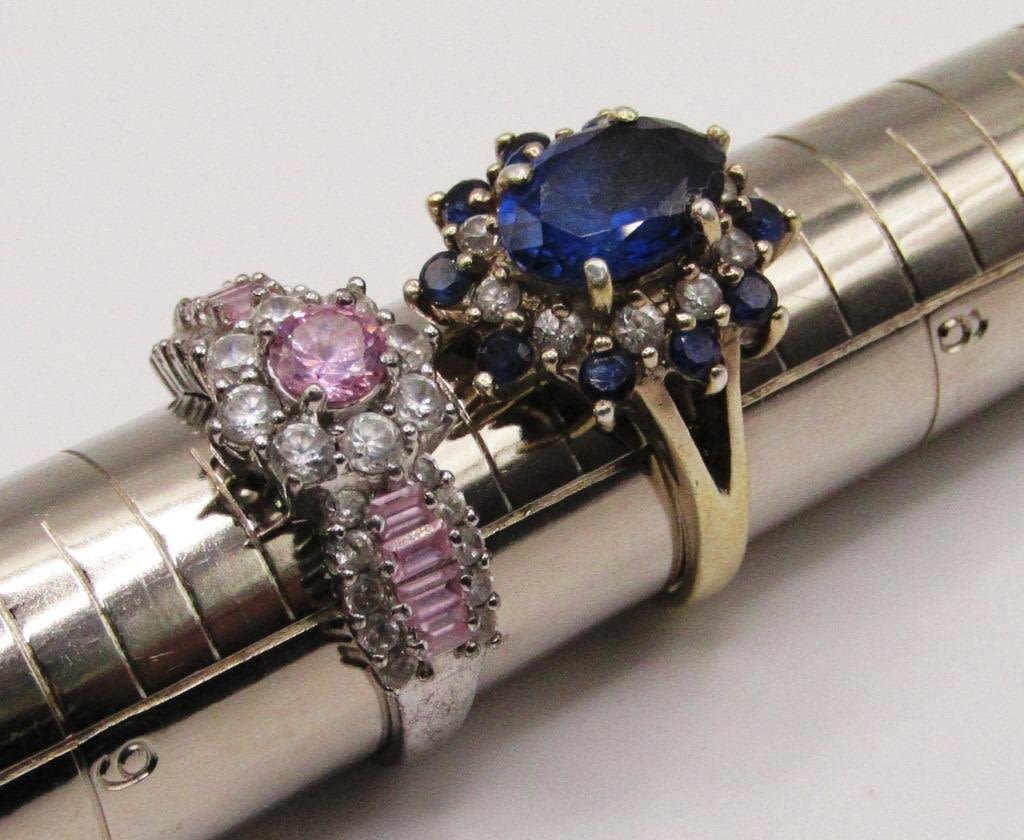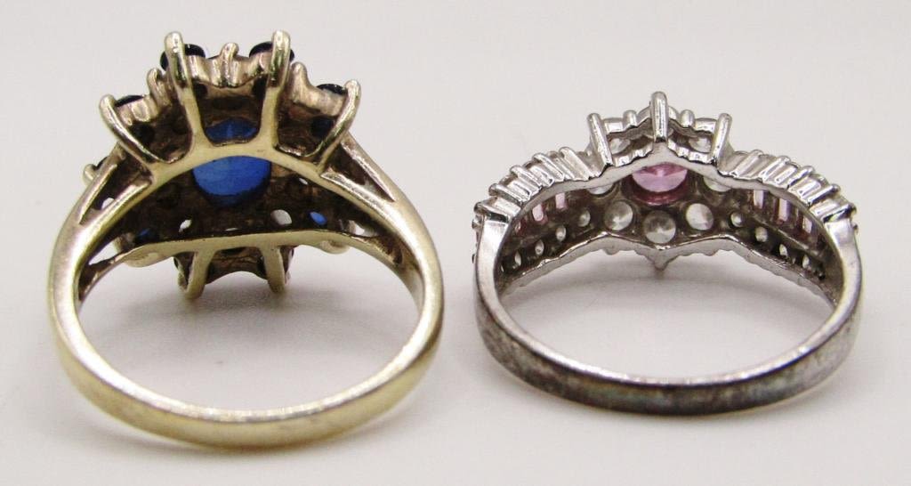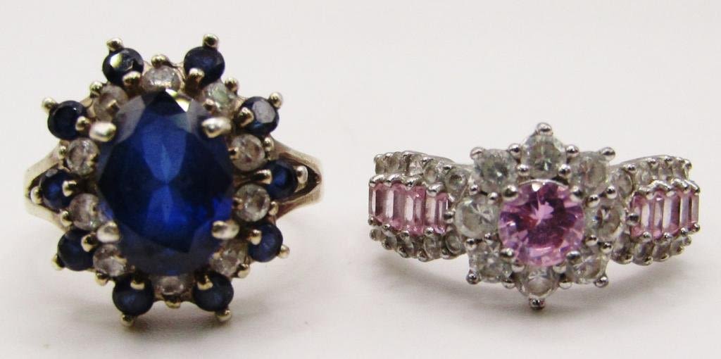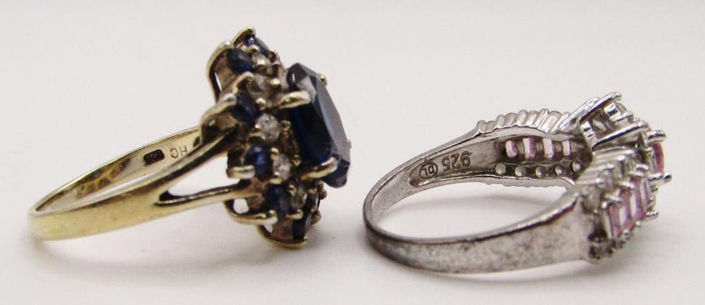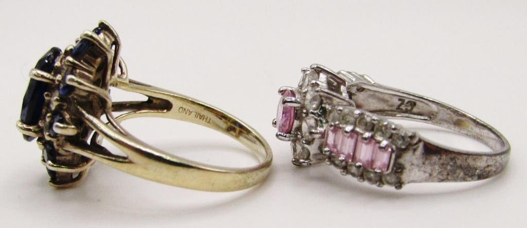 BLUE STONES (1)WITH PINK/CLEAR STONE ACCENTS-RING SIZE 7 & 8-TOTAL 6.4 DWT