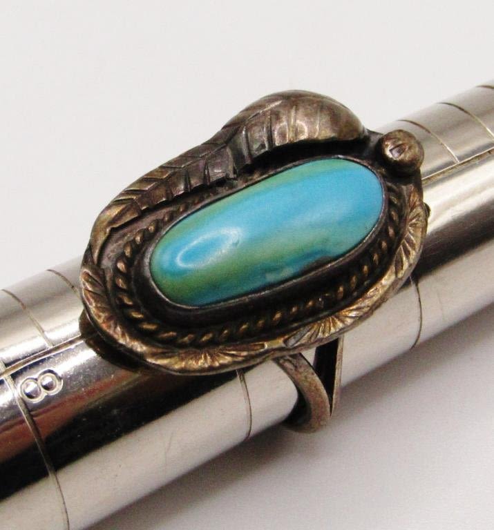 TURQUOISE CENTER STONE-RING SIZE 7-TOTAL 3.6 DWT