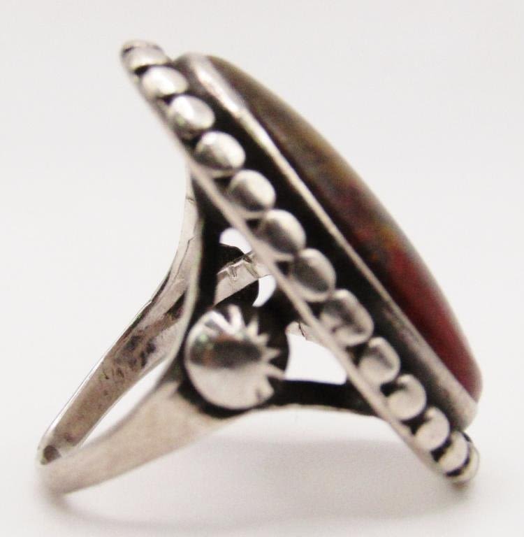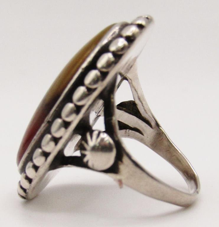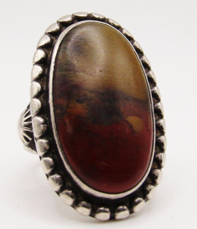 RING WITH DEEP RED/YELLOW POLISHED NATURAL CENTER STONE-TOTAL 13 DWT