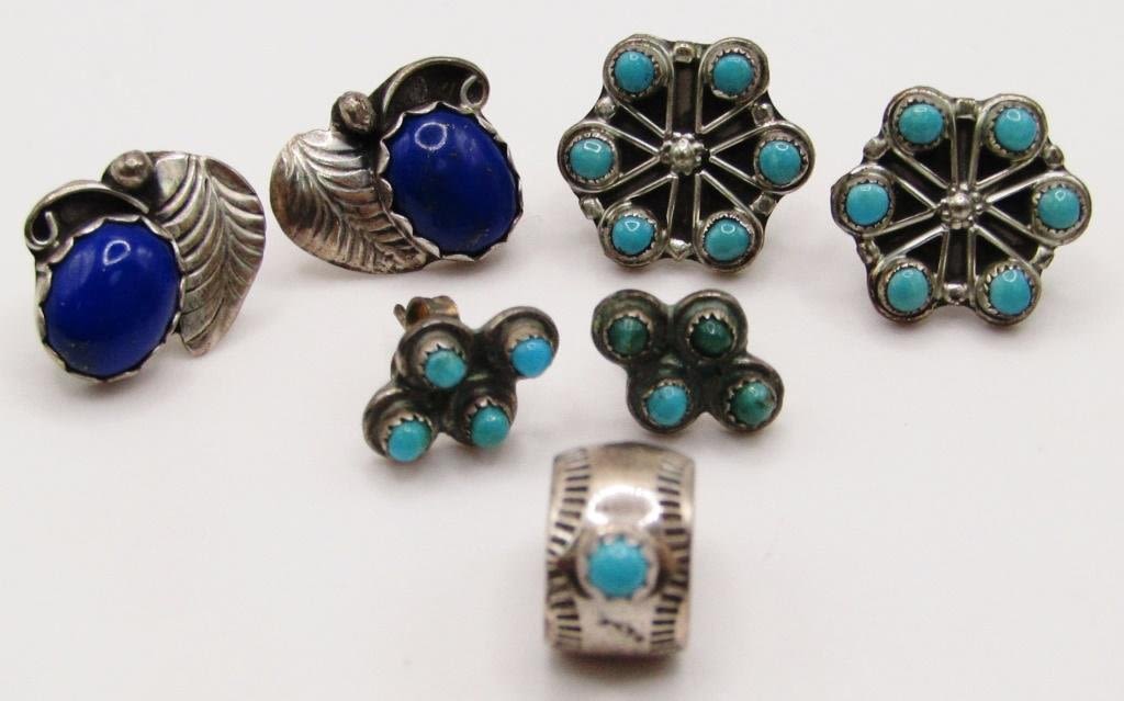EARRINGS PLUS (1)EAR CUFF-SLEEPING BEAUSTY/LAPIS STONES-TOTAL 10.3 DWT