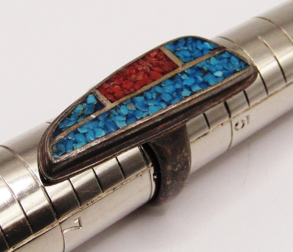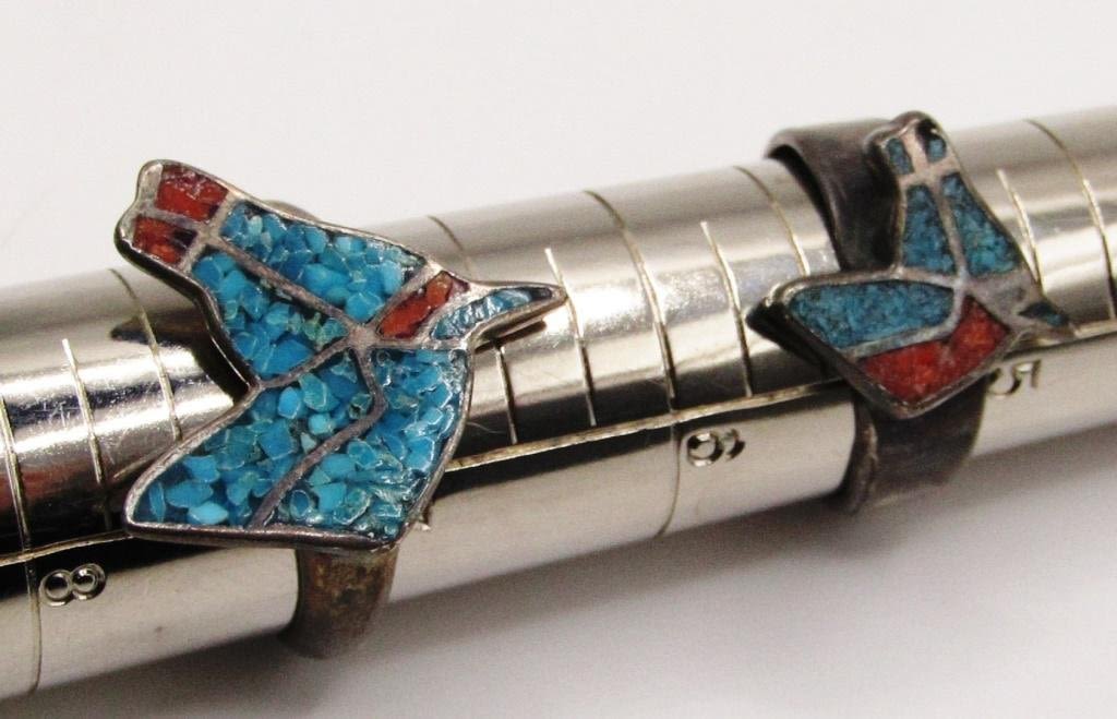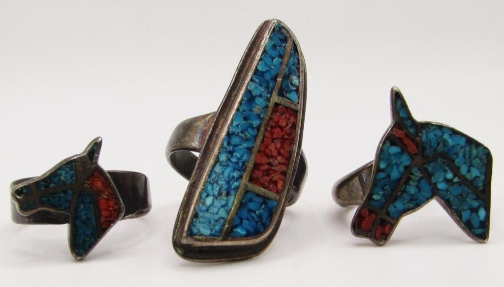 CHIPPED TURQUOISE AND RED CORAL INLAY DESIGN-VARIOUS SIZES 5.5-7.5-TOTAL 11.3 DWT