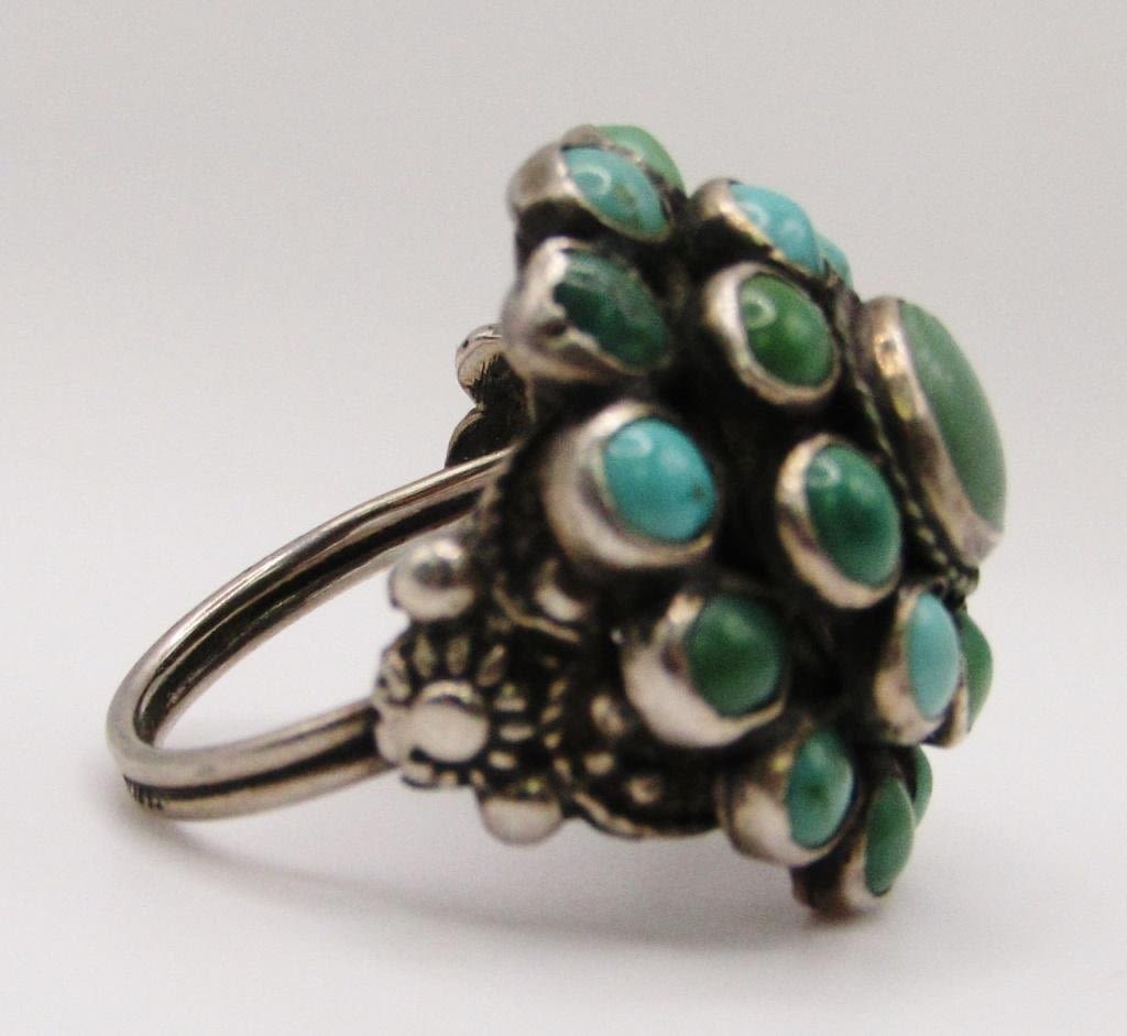 TURQUOISE STONE CLUSTER DESIGN-RING SIZE 5.5-TOTAL 4.4 DWT