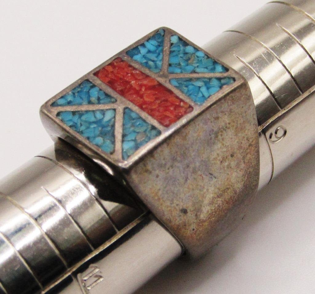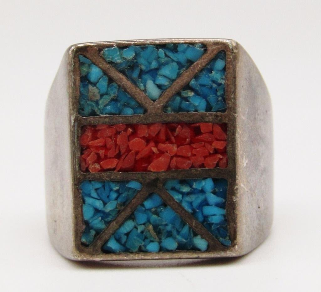 WITH CHIPPED TURQUOISE AND RED CORAL INLAY DESIGN-TOTAL 11.3 DWT