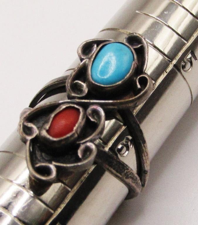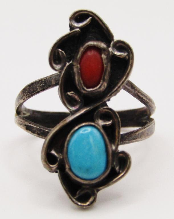 WITH SLEEPING BEAUTY AND RED CORAL STONE ACCENTS-RING SIZE 6.5-TOTAL 2.2