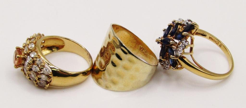 (2)WITH MULTI COLORED STONES (1)WITH HAMMERED DESIGN-TOTAL 7-9-TOTAL 15.1 DWT
