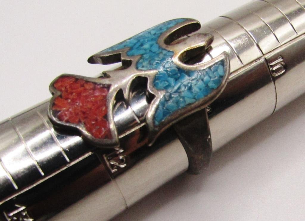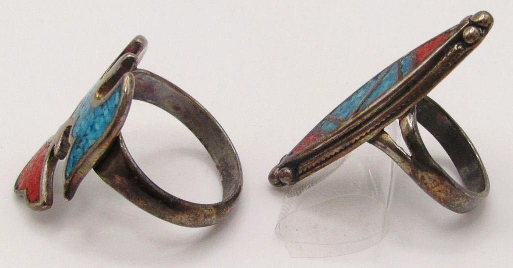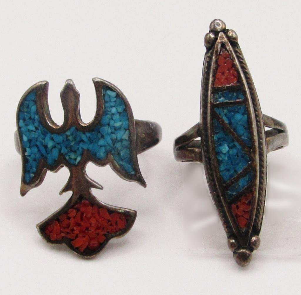 TURQUOISE AND RED CORAL RINGS (1)THUNDERBIRD-RING SIZES 6-11-TOTAL 9.8 DWT