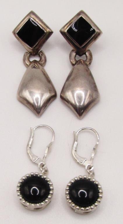 EARRINGS WITH BLACK STONE ACCENTS-TOTAL 10.8 DWT