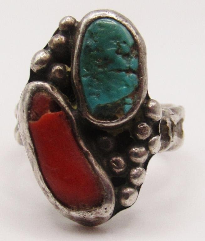 AND GREEN TURQUOISE STONES-RING SIZE 6-TOTAL 4.1 DWT