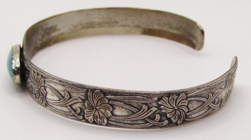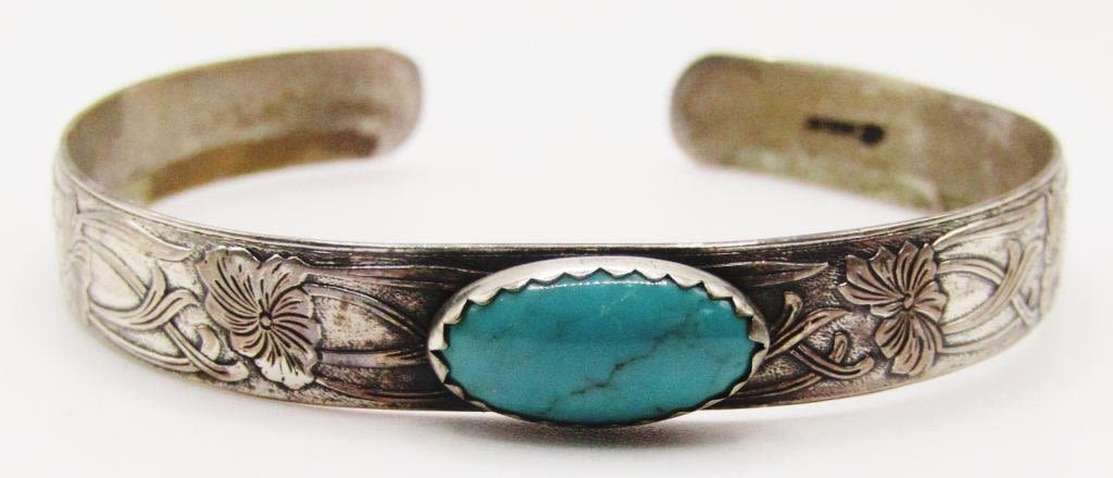 TURQUOISE CENTER STONE-ENGRAVED DESIGN ON BAND-TOTAL 6.7 DWT