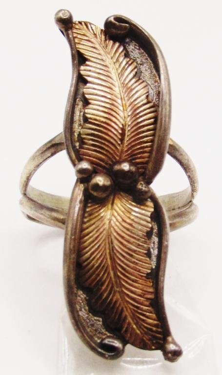 RING WITH GOLD TONED LEAF DESIGN-RING SIZE 10-TOTAL 4.3 DWT