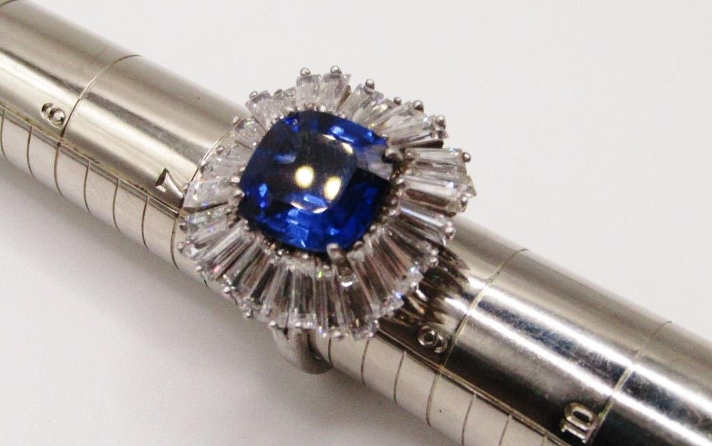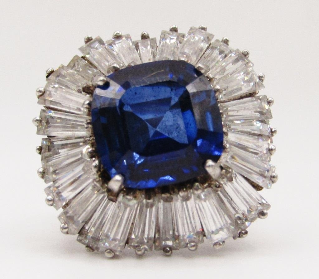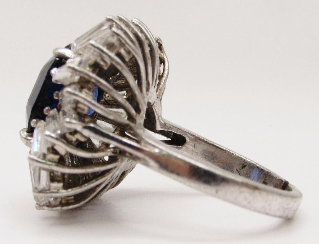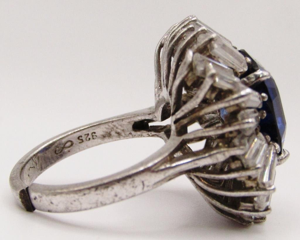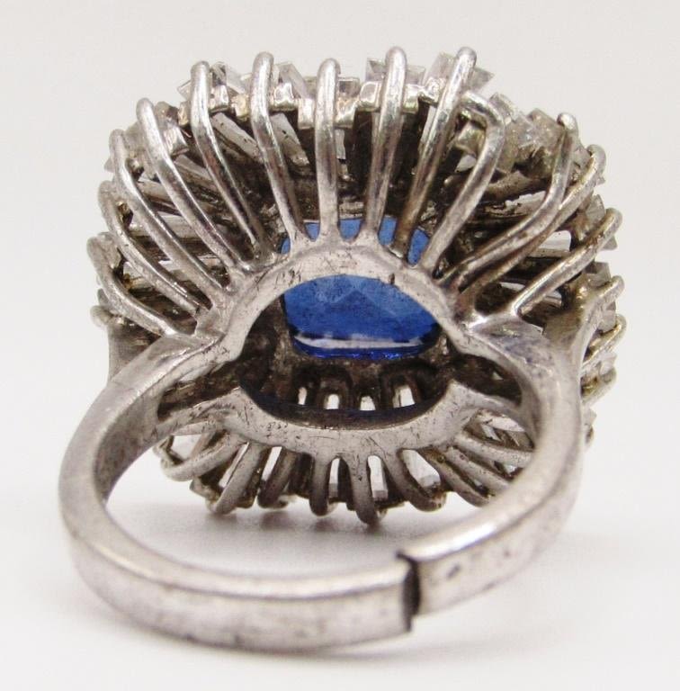 NAVY BLUE CENTER STONE-CLEAR STONE AROUND BORDER-RING SIZE 8-TOTAL 9.1 DWT