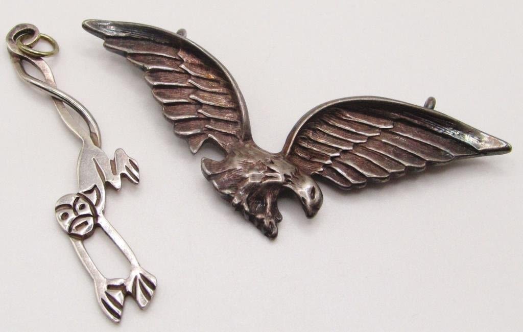 2-STERLING ANIMAL PENDANTS (1)BALD EAGLE