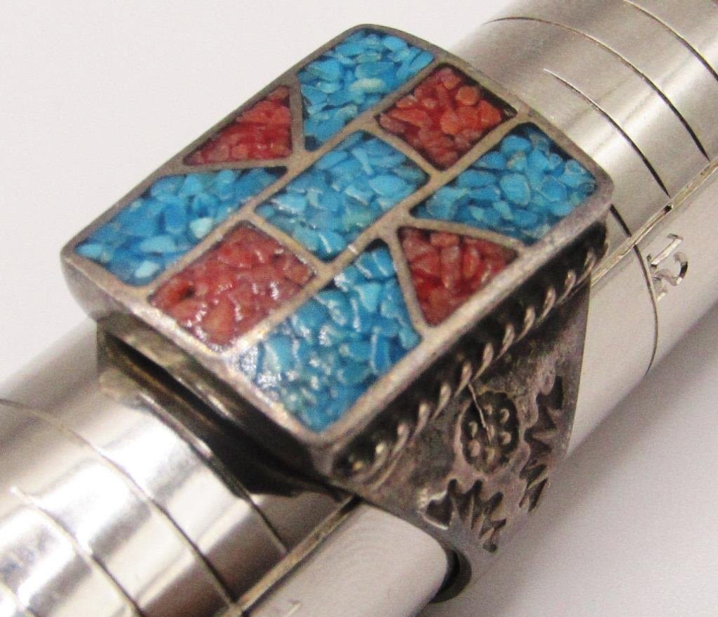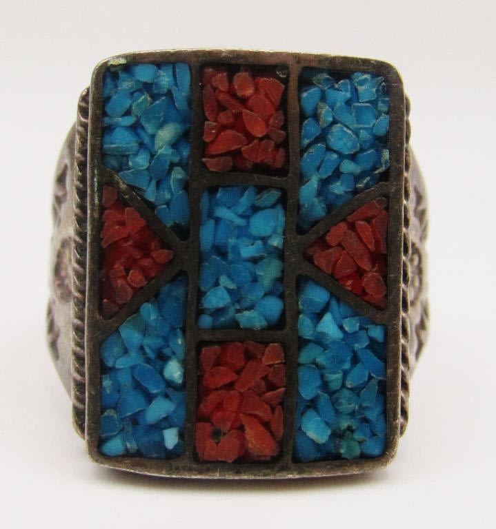 CHIPPED TURQUOISE AND RED CORAL STONE INLAY DESIGN-TOTAL 9.3 DWT