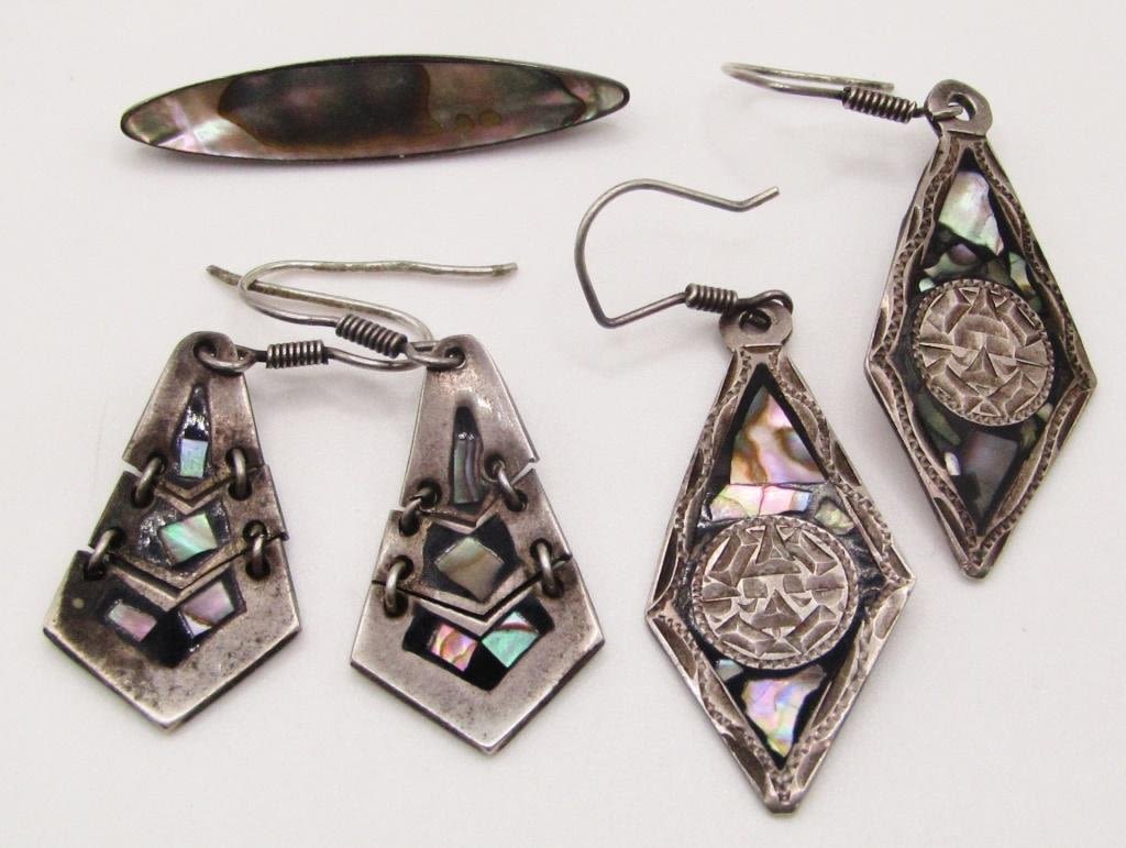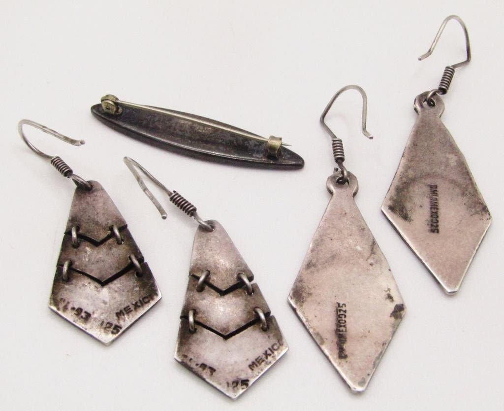 PIERCED DANGLY EARRINGS (1)BROOCH-TOTAL 14.5 DWT