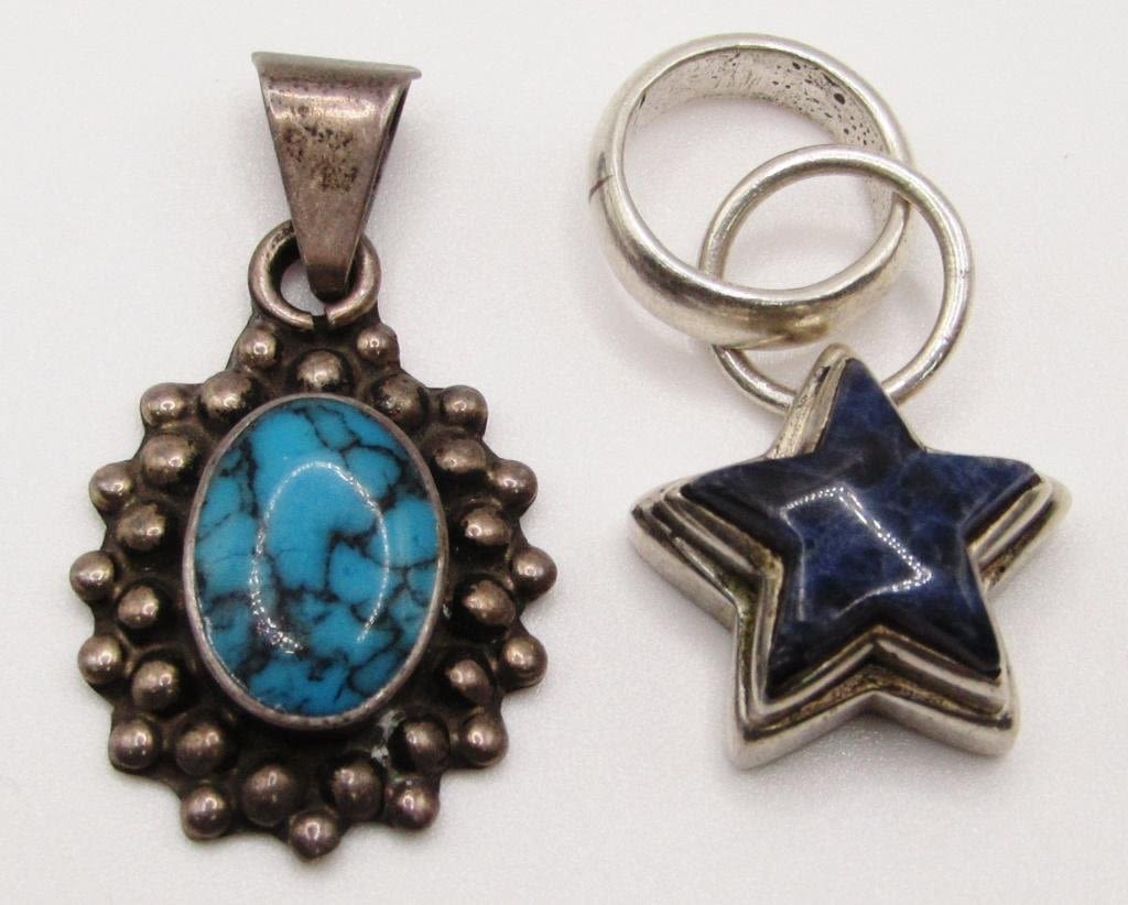 BLUE LAPIS STONE (1)MARKED MEXICO WITH TURQUOISE INLAY-TOTAL 10.5 DWT