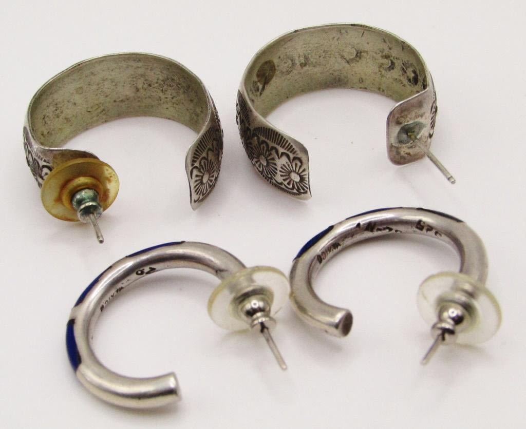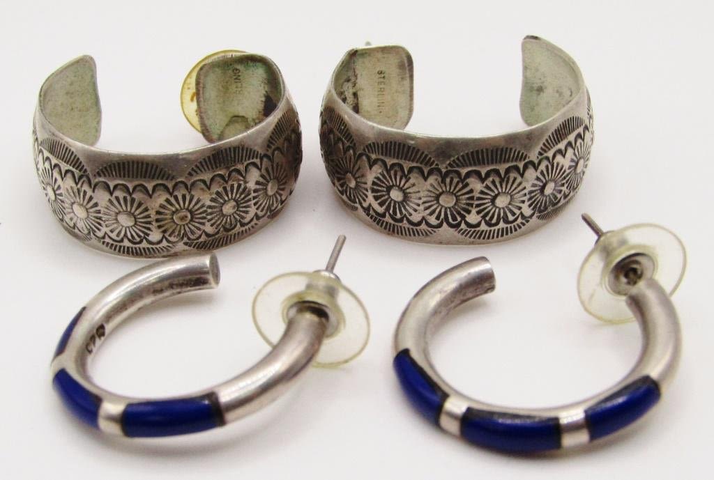 HOOP EARRINGS-FLORAL ENGRAVED DESIGN-BLUE LAPIS INLAY DESIGN-TOTAL 14.7 DWT