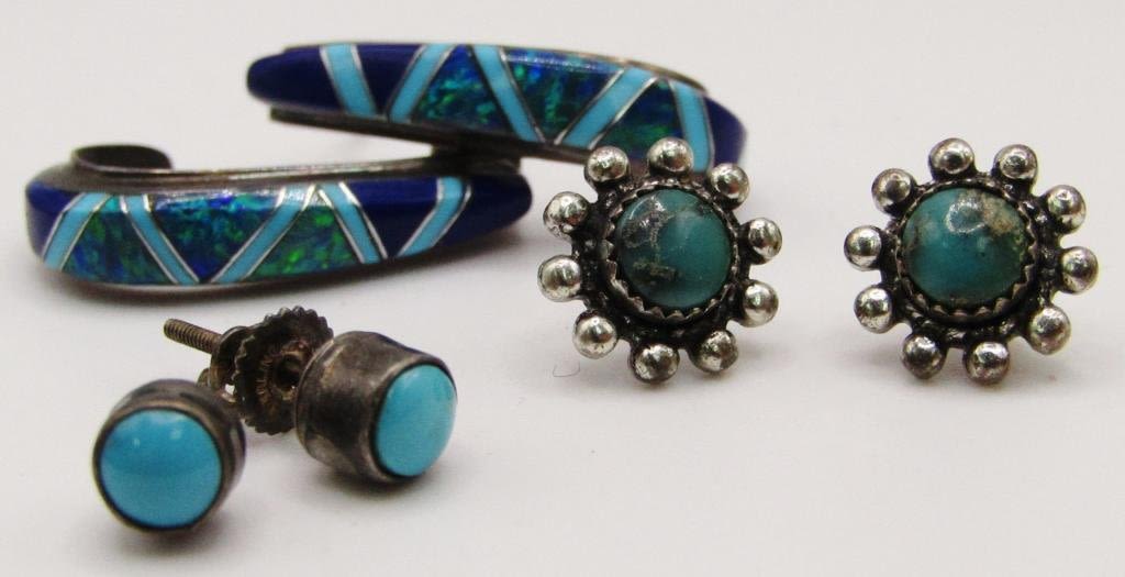 ZUNI-TURQUOISE STONES-PIERCED-TOTAL 6 DWT