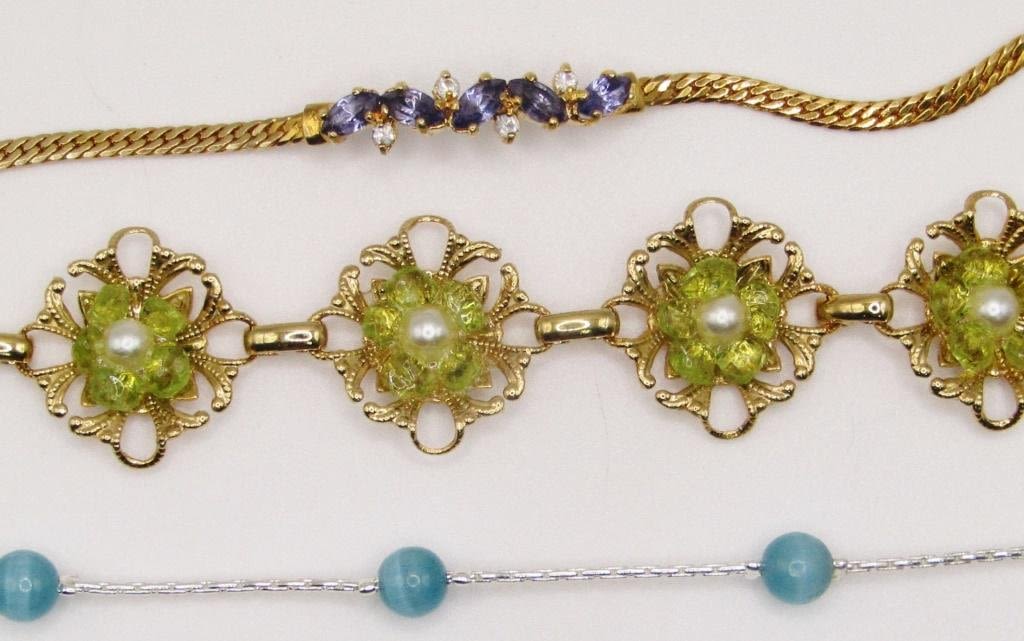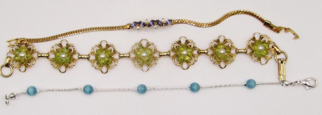 BLUE BEADS, PURPLE AND GREEN RHINESTONES!