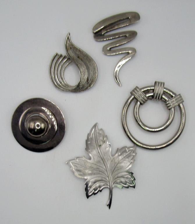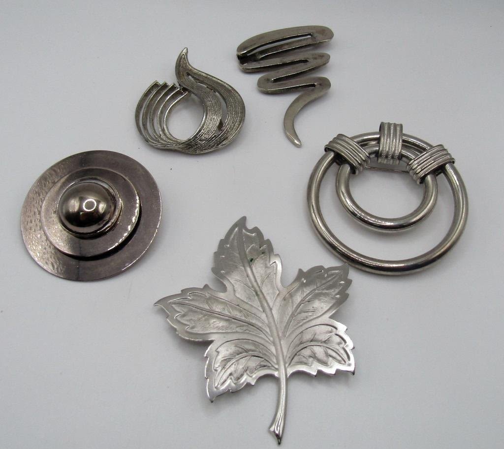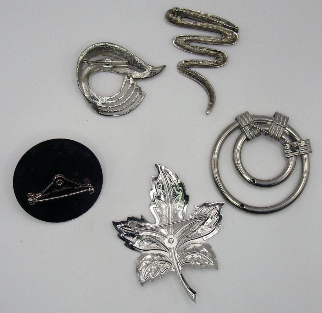 5 pc Silver Toned Vintage Brooches