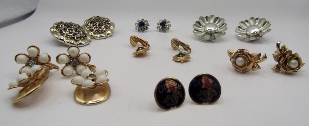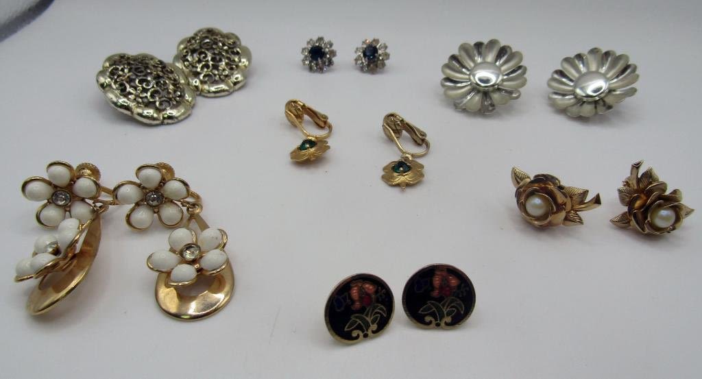 7 sets of flowery earings, screw back, pierced and clip on