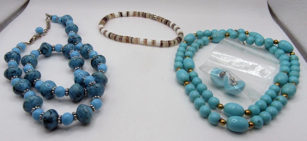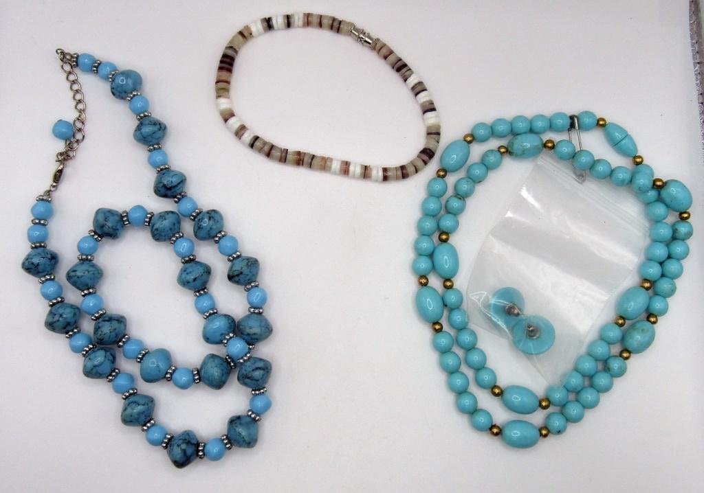 turquoise colored necklace and earing set, Turquoise necklace and earth toned bracelet