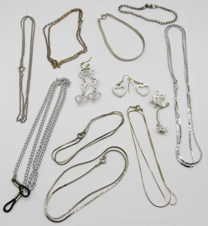 6 NECKLACES, 2 BRACELETS, 2 PAIRS OF EARRINGS, 1 PIN, 1 EYEGLASS CHAIN