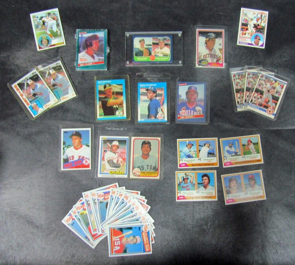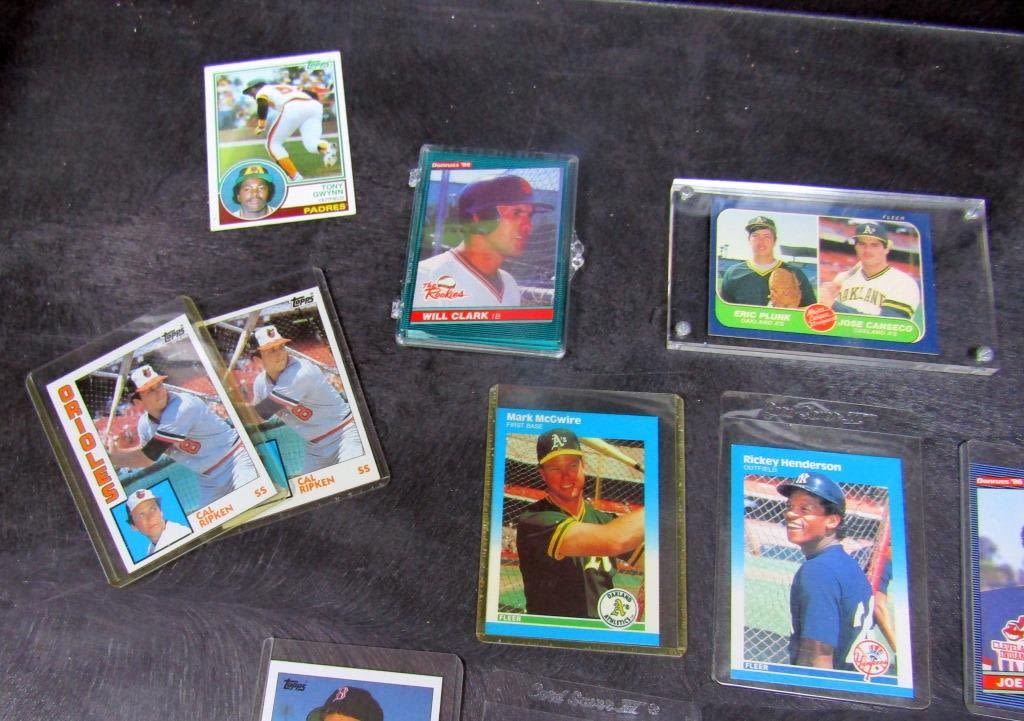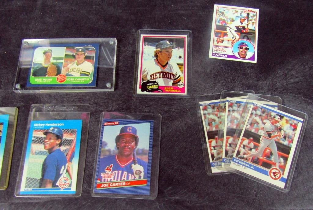 1981 TOPPS TRAMMELL, LDRS #1,3, 5, 6, 1981 DONRUSS MURRAY, 1981 FLEER YAZ, 1983 TOPPS JACKSON & GWYNN ROOKIE (GOOD NAIL HOLE), (2) 1984 TOPPS RIPKEN, (3) 1984 FLEER RIPKEN, 1985 TOPPS CLEMENS ROOKIE, 1985 TOPPS McGWIRE
