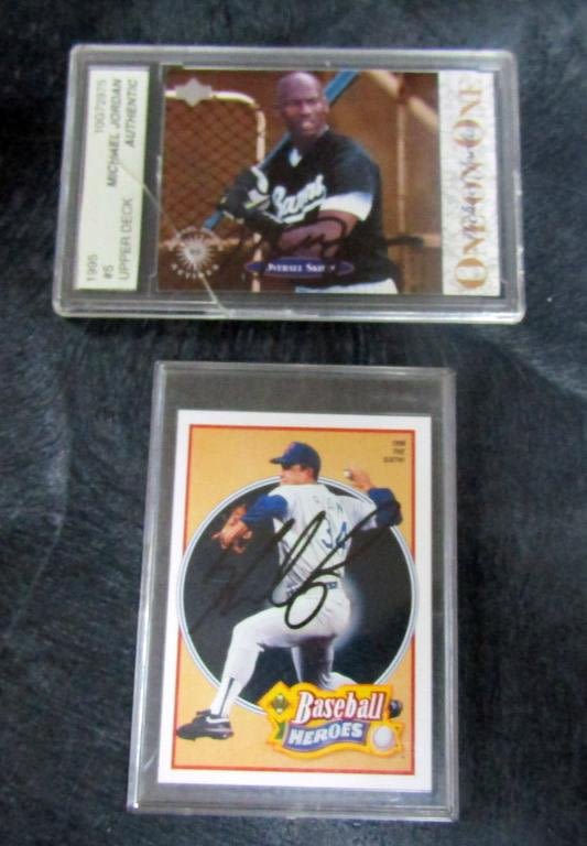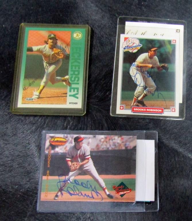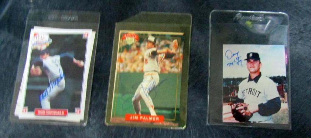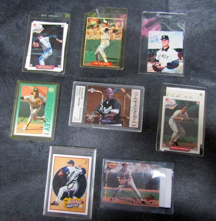 (2) BROOKS ROBINSONS, DON DRYSDALE, JIM PALMER, DENNIS ECKERSLEY, DENNY McLAIN, MICHAEL JORDAN BASEBALL (cracked case) – SOME WITH COA’s – NO PSA/DNA