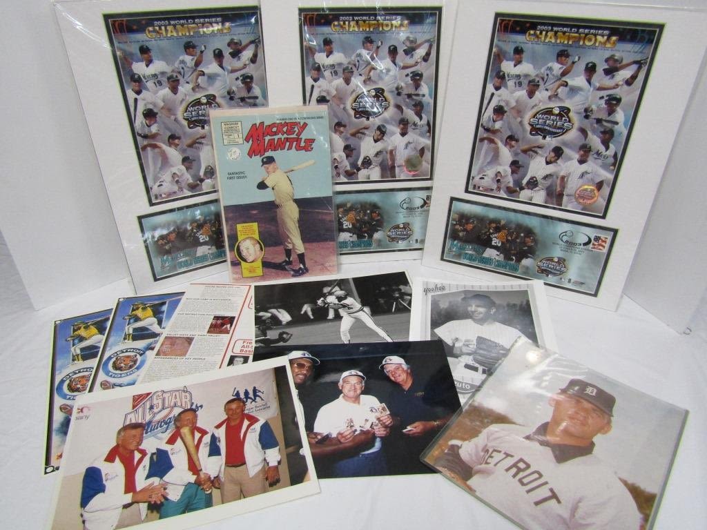 (5) 8×10’s, UPPER DECK DETROIT 1972 WINNERS, (3) 2003 WORLD SERIES CHAMPIONS MARLINS MATTED PIECE