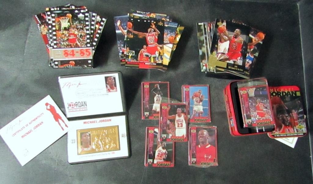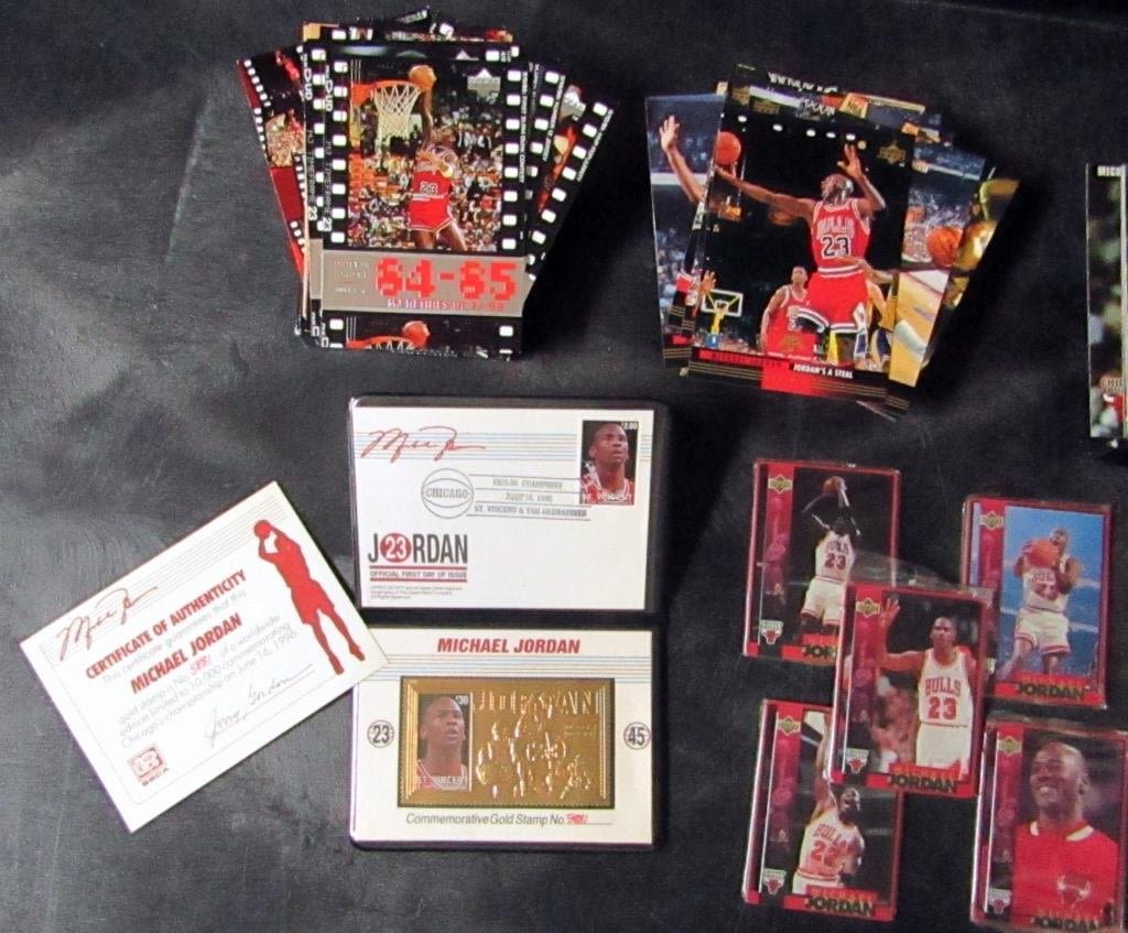 4 opened sets(Mr June)(Metal Cards)(Retierment set)(Jordan Collection). One commemorative stamp.
