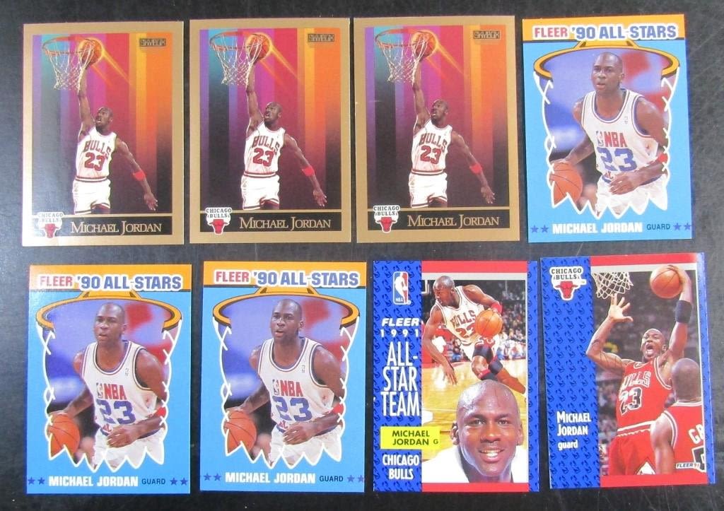 (3) 1990/91 SKYBOX #41 JORDAN (2) NM/MT (1) EM; 1991/92 FLEER #29 & #211 MICHAEL JORDAN NM/EM